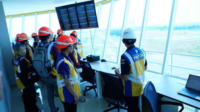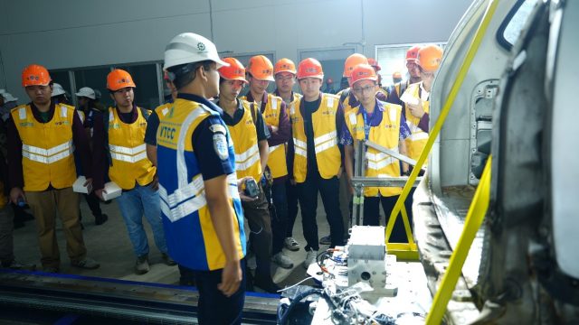 Usai sesi pemaparan, mahasiswa diajak berkeliling area pengujian oleh Bapak Mohamad Ardy Firmansyah, S.T., M.T, EV Safety Testing Engineer di BPLJSKB. Salah satu fasilitas yang paling menarik perhatian adalah fasilitas uji tabrak (Crash Test), di mana mahasiswa dapat melihat langsung lokasi pengujian tabrak depan dan samping kendaraan. Pengalaman semakin berkesan ketika rombongan diajak menaiki menara pemantauan (control tower), yang berfungsi sebagai pusat kendali seluruh aktivitas pengujian. Dari ketinggian tersebut, mahasiswa dapat menyaksikan langsung kompleksitas dalam mengatur lalu lintas pengujian kendaraan dan melihat berbagai fasilitas pengujian yang tersedia di Kawasan tersebut.